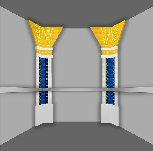 A proposal for the San Antonio Museum of Art’s unrealized exhibition “Generally Electric,” Any Which Way consisted a series of columns for its elevator interiors that combined classical architectural elements with industrial materials. It used the spatial characteristics of light, color, and structural elements to alter the experience of a small enclosed elevator cab into a journey through an expansive and richly colored environment. White reflective road sign material cladding the columns were softly illuminated by the ambient light inside the elevator, while a rich, golden glow was cast on the amber reflective sheeting of the columns' capitals. Diffused yellow LEDs amplified the effect, and strips of blue and green LEDs contrasted with their black backgrounds. The entire effect was unexpected and ethereal. The "W" configuration of LEDs in the capitals also offered the possibility of tapping into the elevator’s power, so that the only lights that were on form an "Up" or "Down" arrow, depending on which way the elevator was headed.