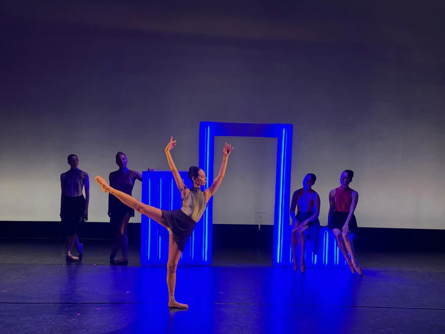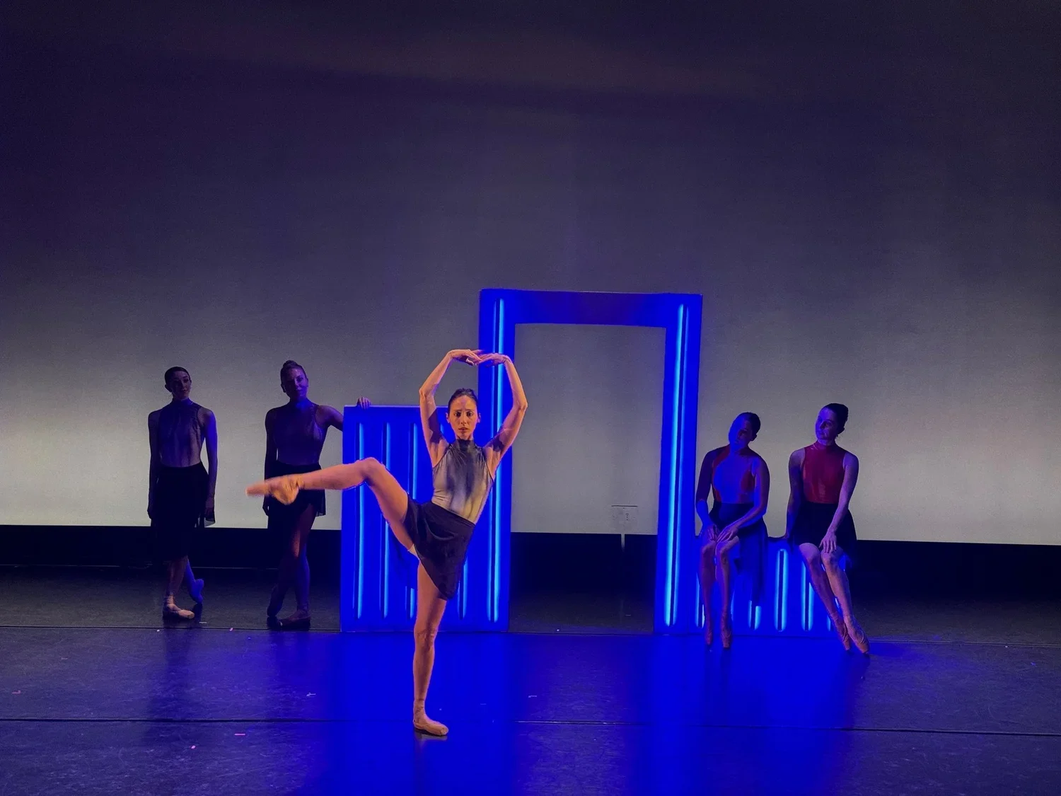 The artwork stretched to almost 11 feet; the left section was a high panel, the middle was a doorway, and the right was a bench, giving the choreographer many ways to place the dancers.